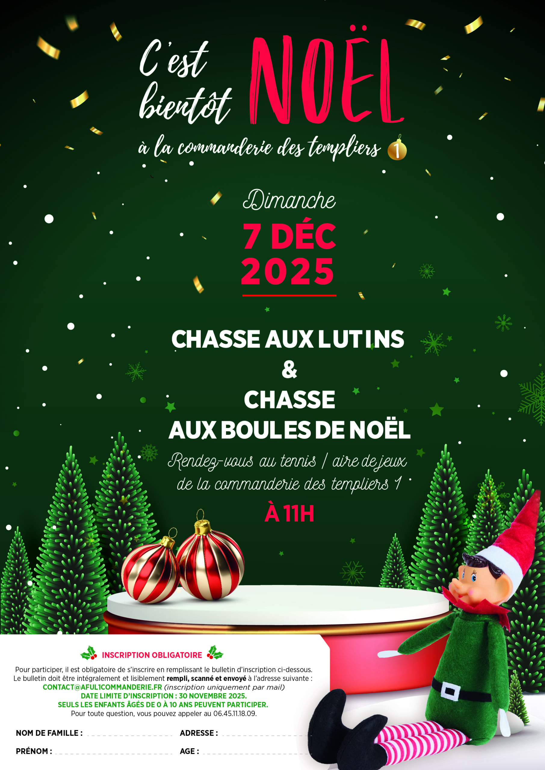 Nous vous attendons nombreux à ce rendez-vous du dimanche 7 décembre 2025 à 11h00 auprès des tennis et de l’aire de jeux de la résidence de La Commanderie des Templiers 1.